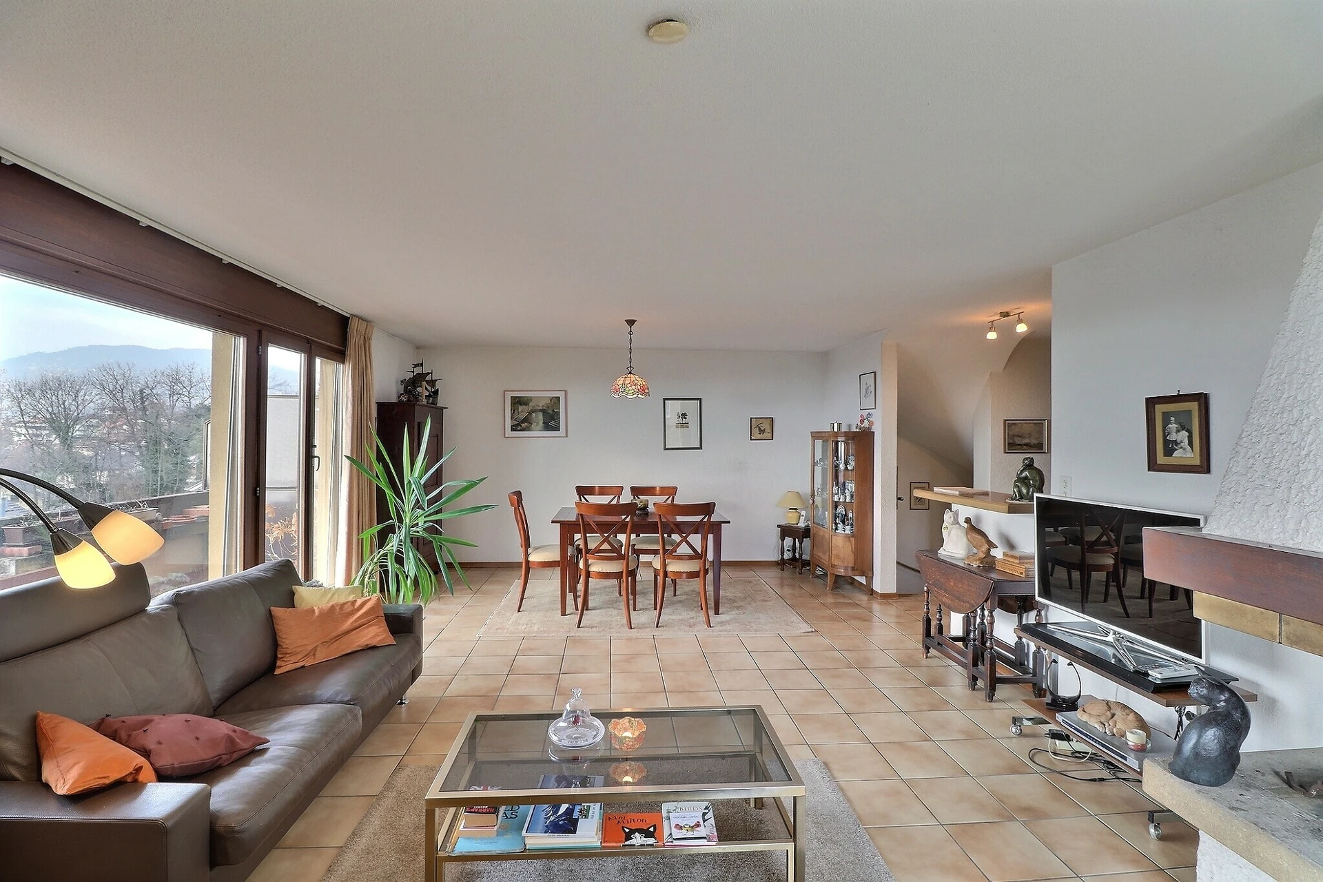 • Un grand espace séjour - salle à manger avec une belle cheminée ainsi que de grandes baies vitrées qui permettent d'accéder au balcon ou sur la terrasse.