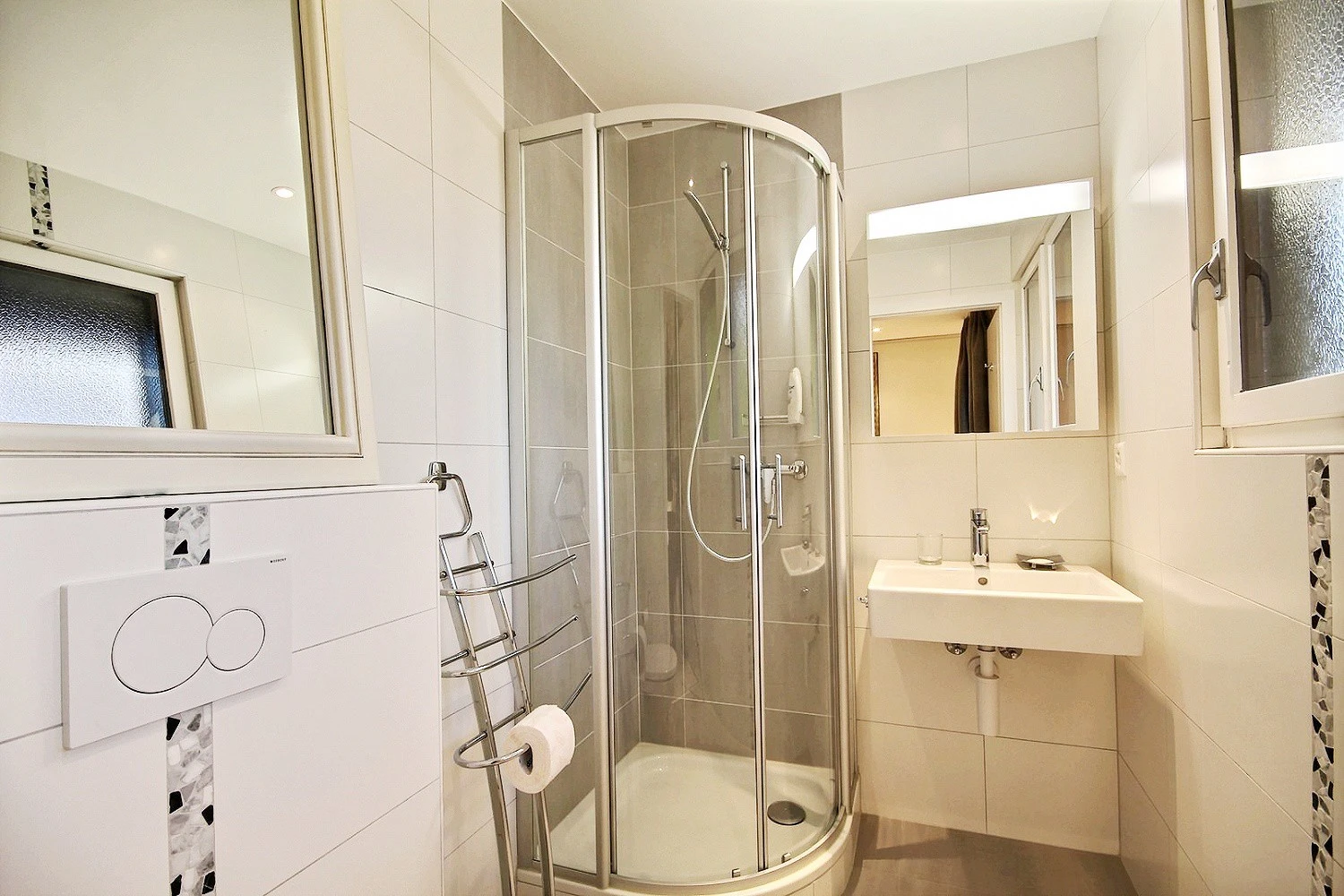 Le volumes et les espaces sont généreux, ouverts et lumineux, offrant la possibilité de créer plus de pièces si souhaité. La maison se compose de 2 logements, à savoir un principal au rez supérieur et à l'étage + un grand studio indépendant au rez inférieur.