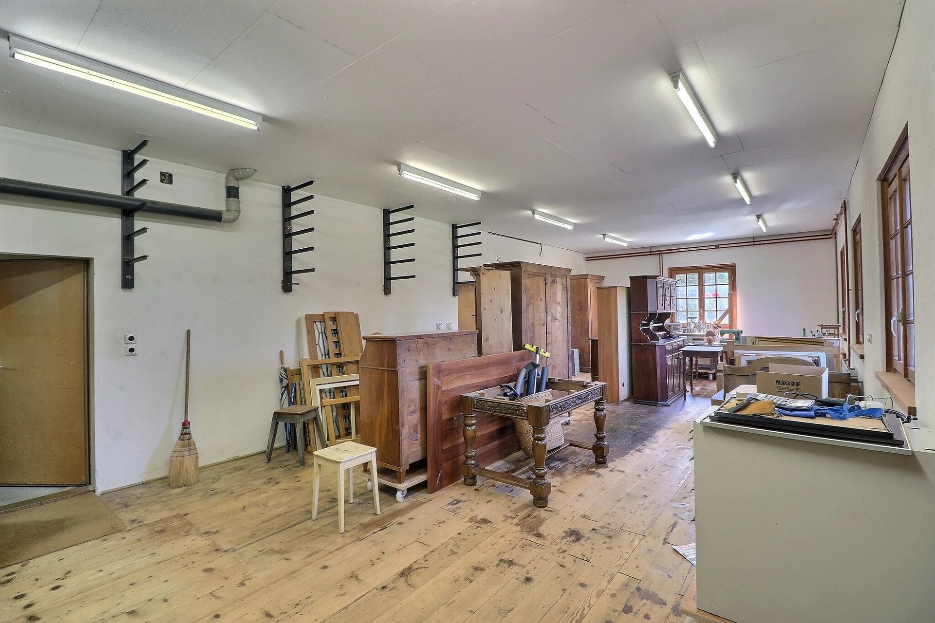 • Un grand espace disponible d'environ 90 m2, qui était utilisé comme atelier de menuiserie et dont la surface est incluse dans la surface habitable car il est chauffé et dispose de plusieurs fenêtres.