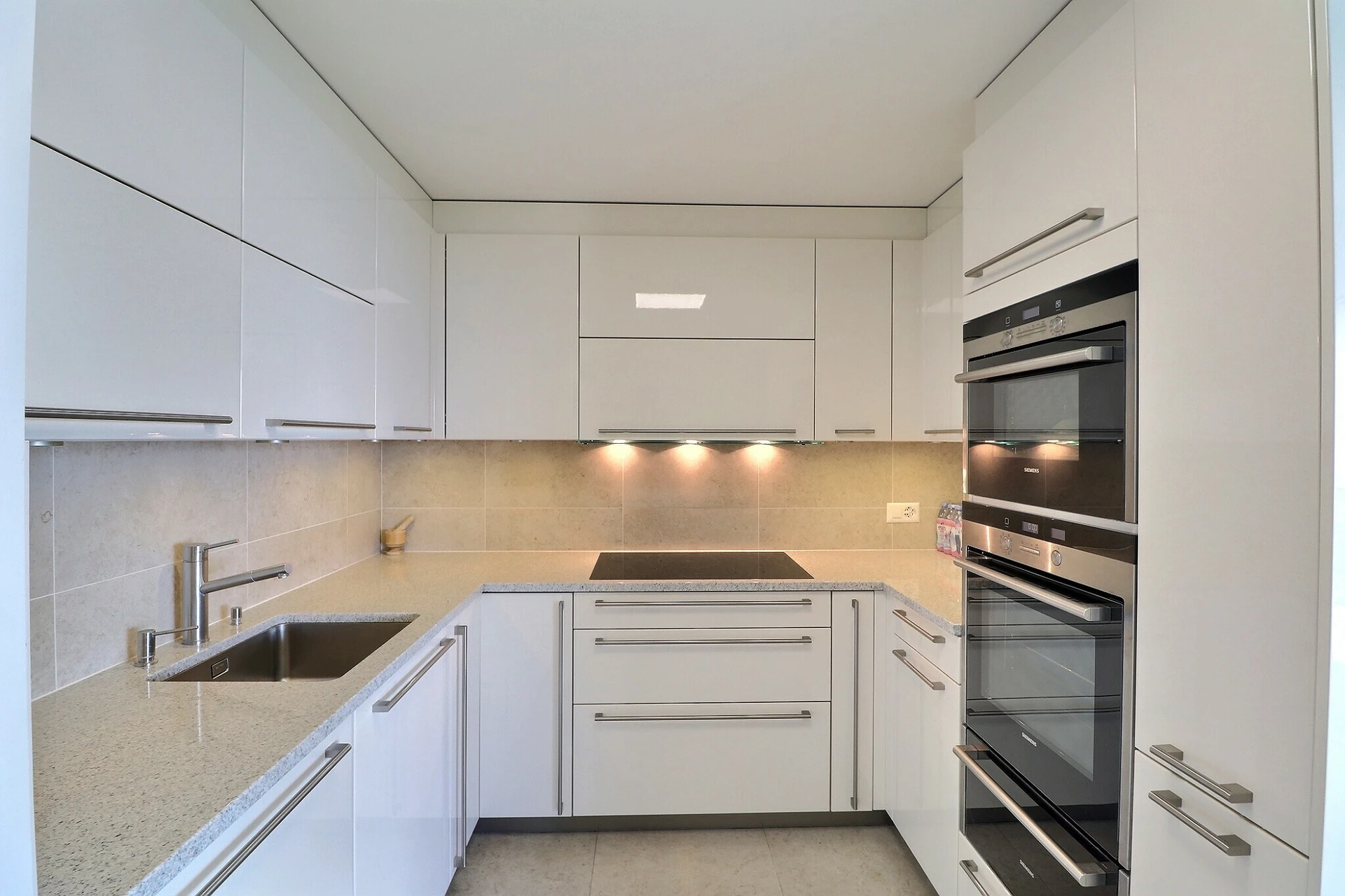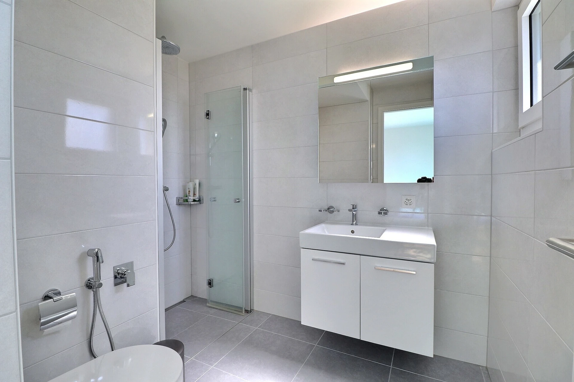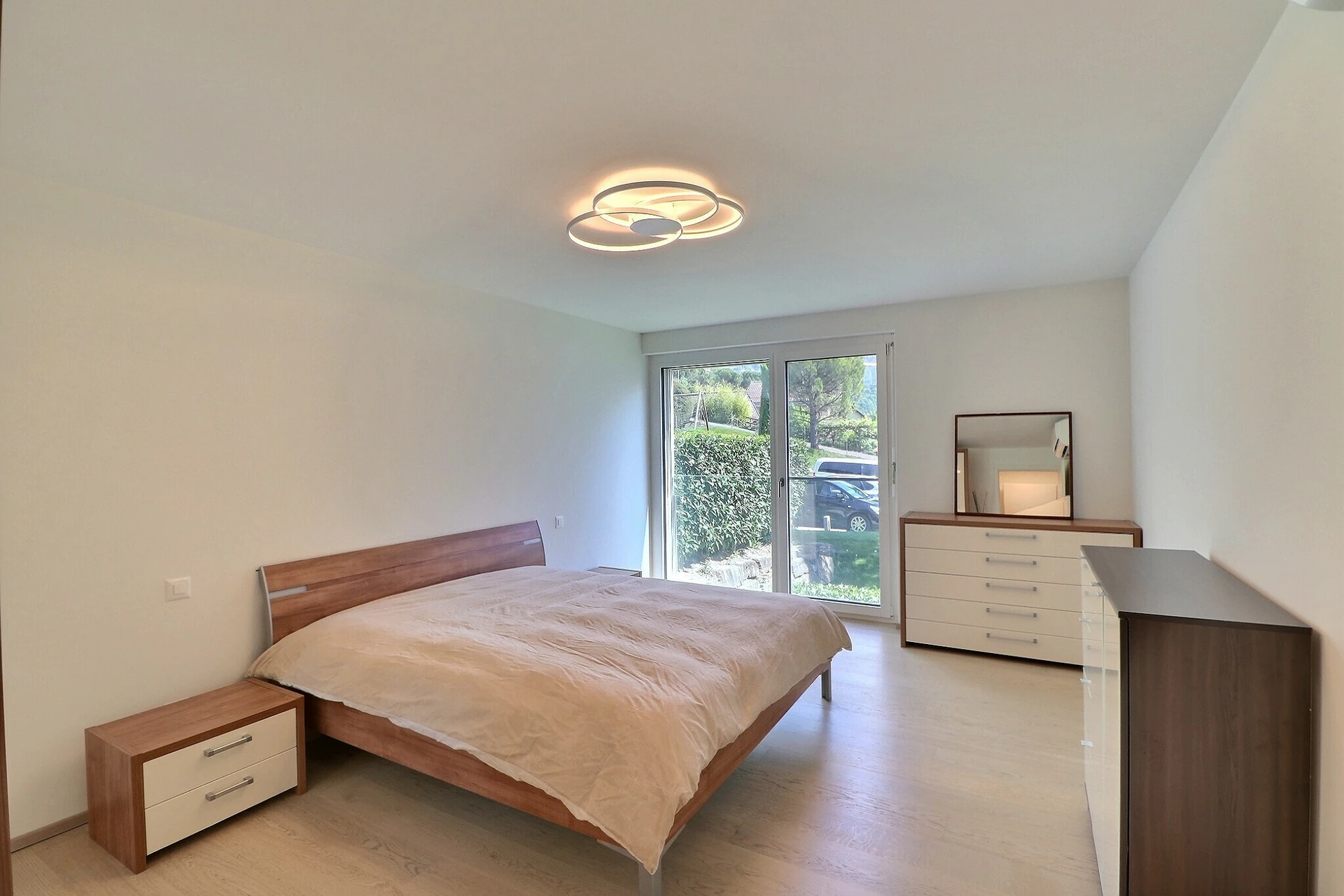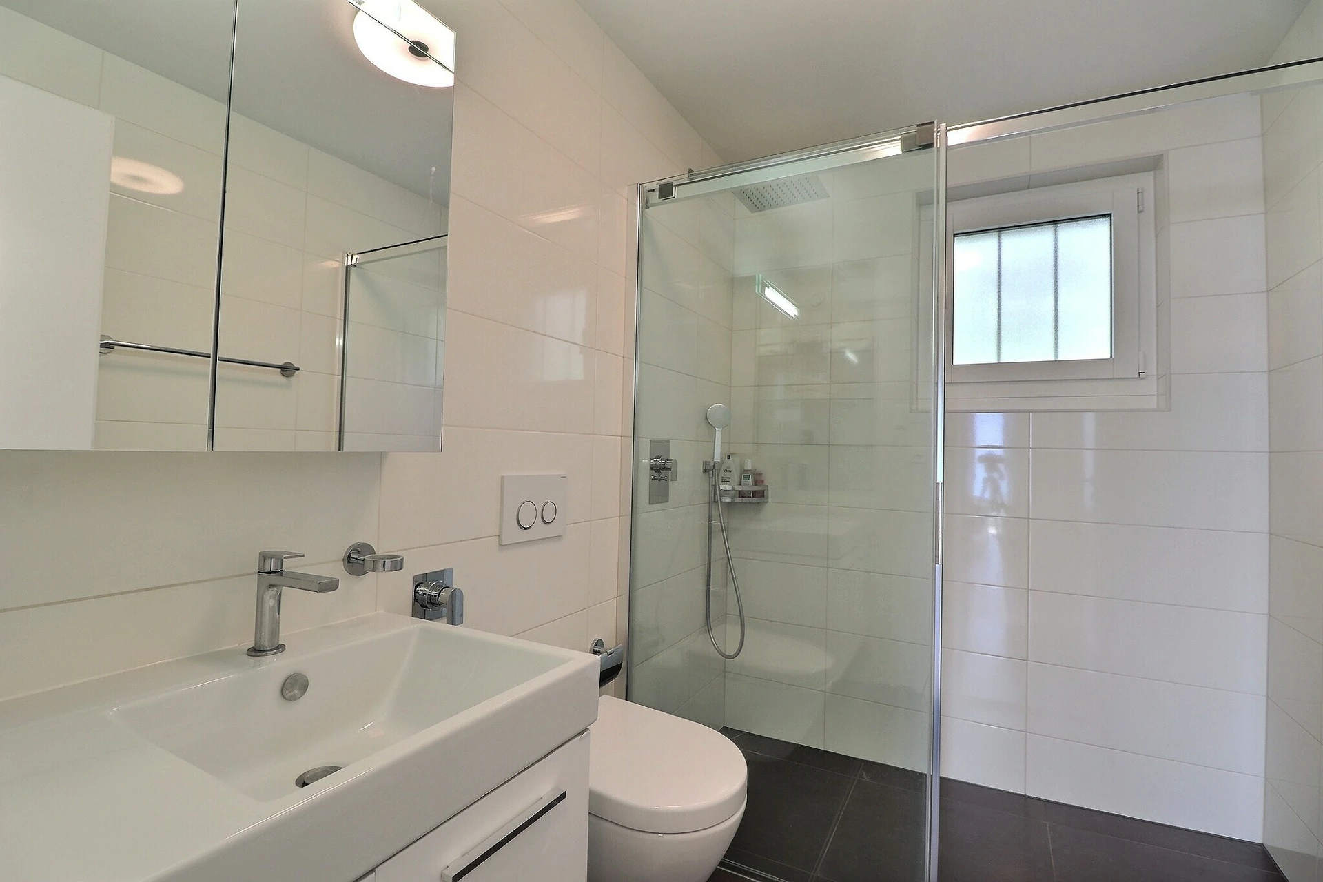 Cet appartement aux finitions modernes comprend une grande cave au sous-sol ainsi que 2 grandes places de parc intérieures dans le garage souterrain, vendues en supplément au prix de CHF 90'000.- les deux.