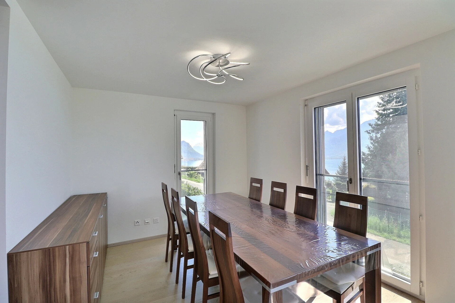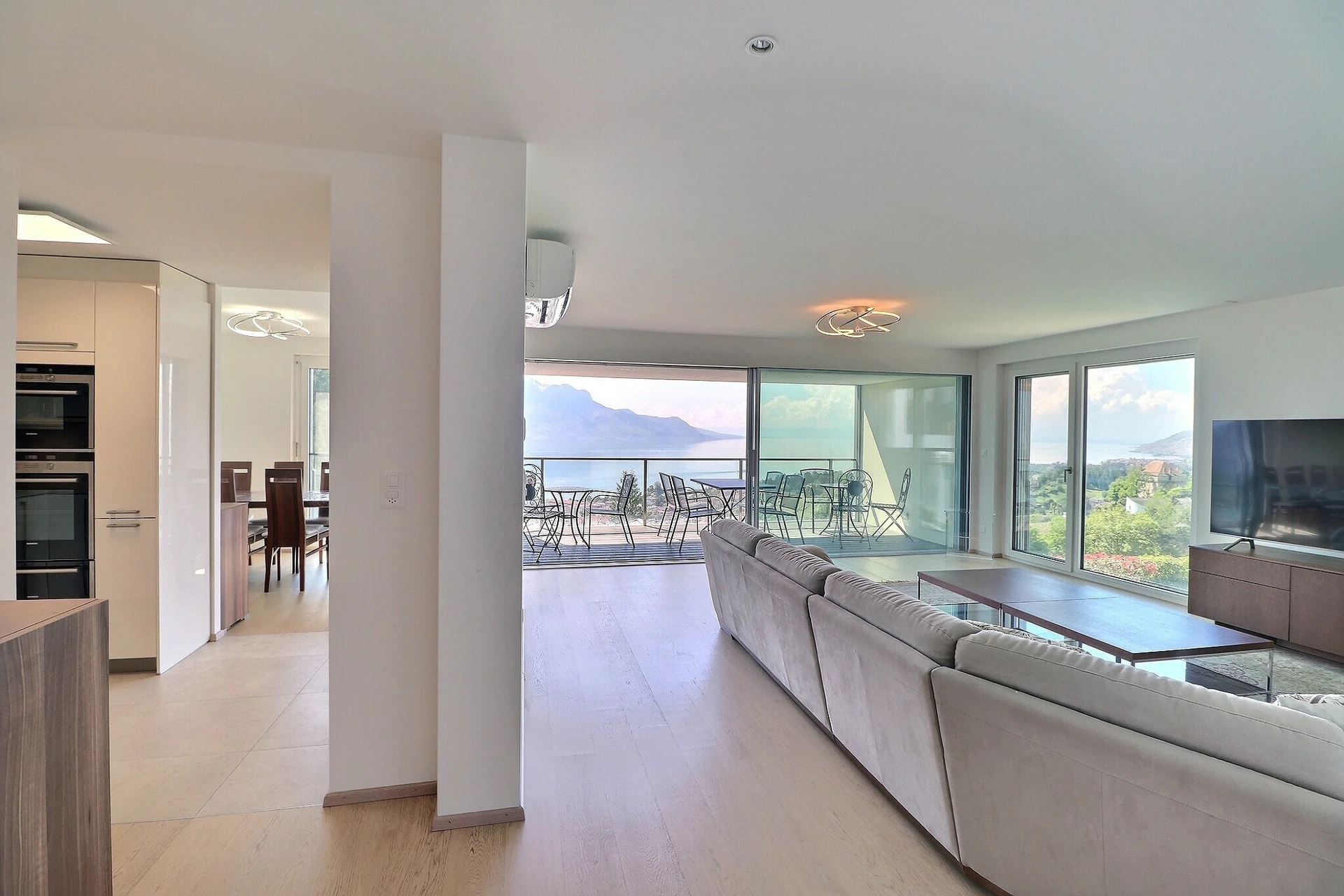 Magnifique appartement de 4,5 pièces d'environ 148 m2 + un balcon loggia d'environ 14 m2 avec une vue panoramique grandiose et imprenable sur le lac Léman et les Alpes.