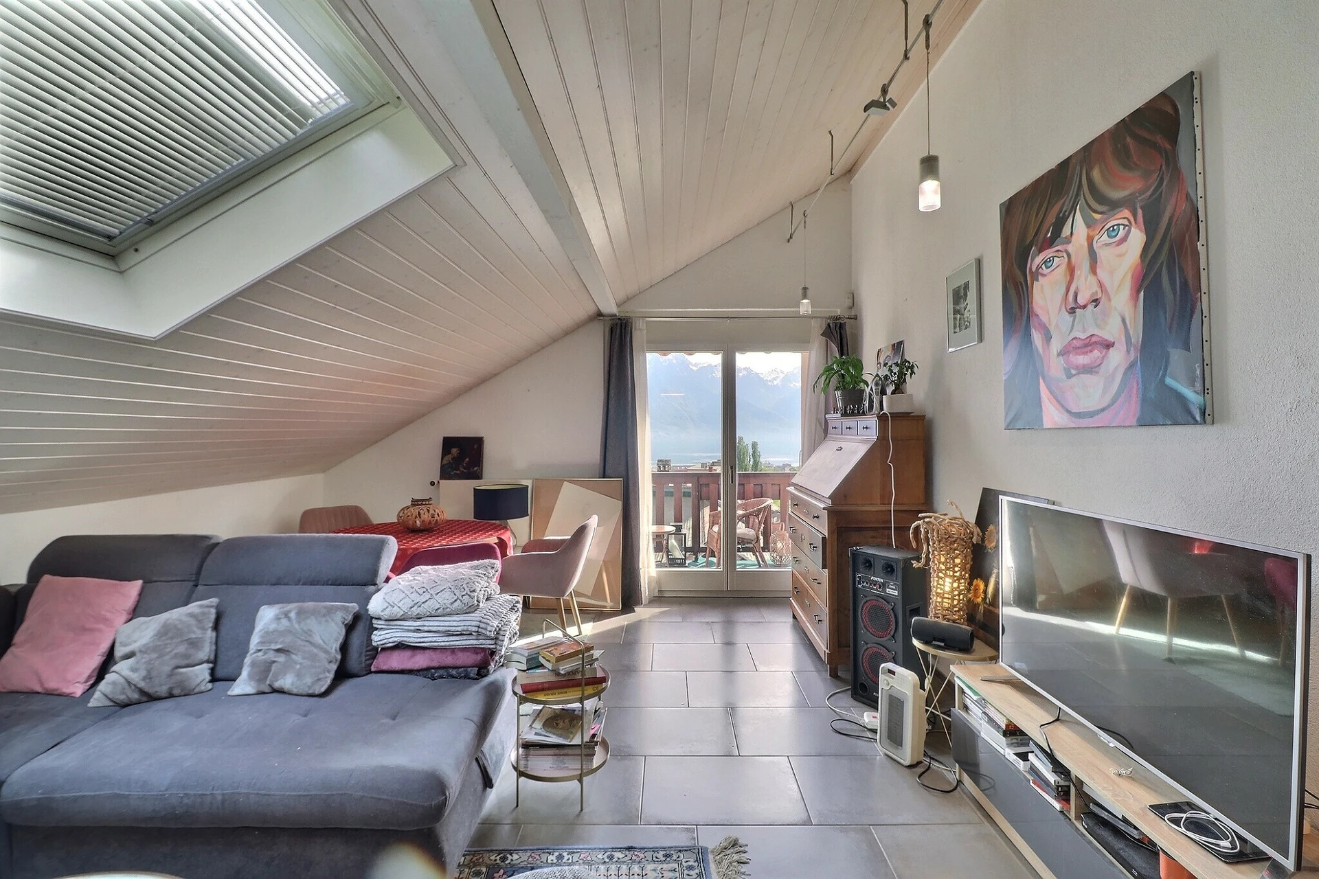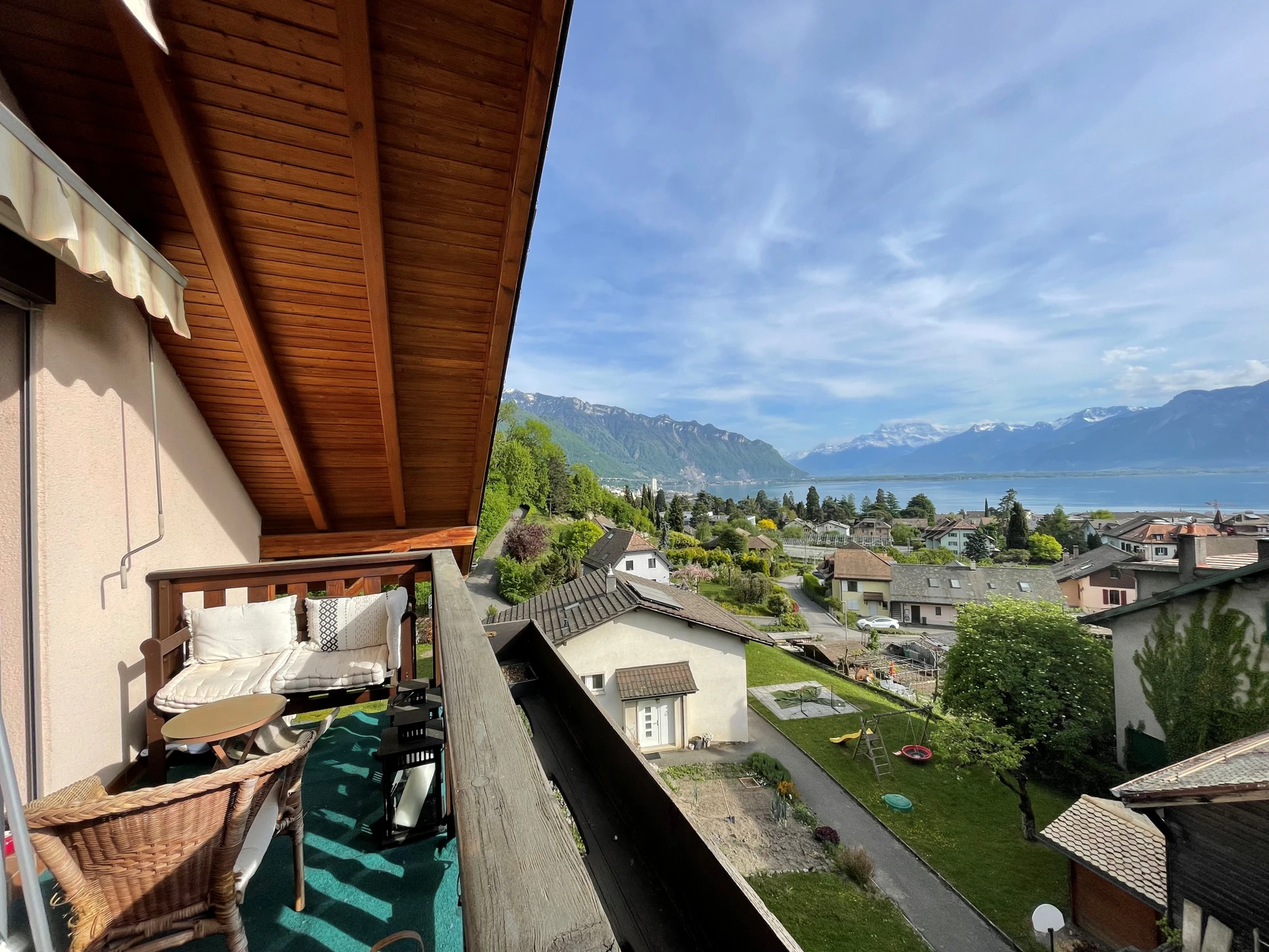 Charmant appartement de 3,5 pièces au dernier étage d'un petit immeuble à Tavel sur Clarens sur la commune de Montreux avec une vue panoramique imprenable.