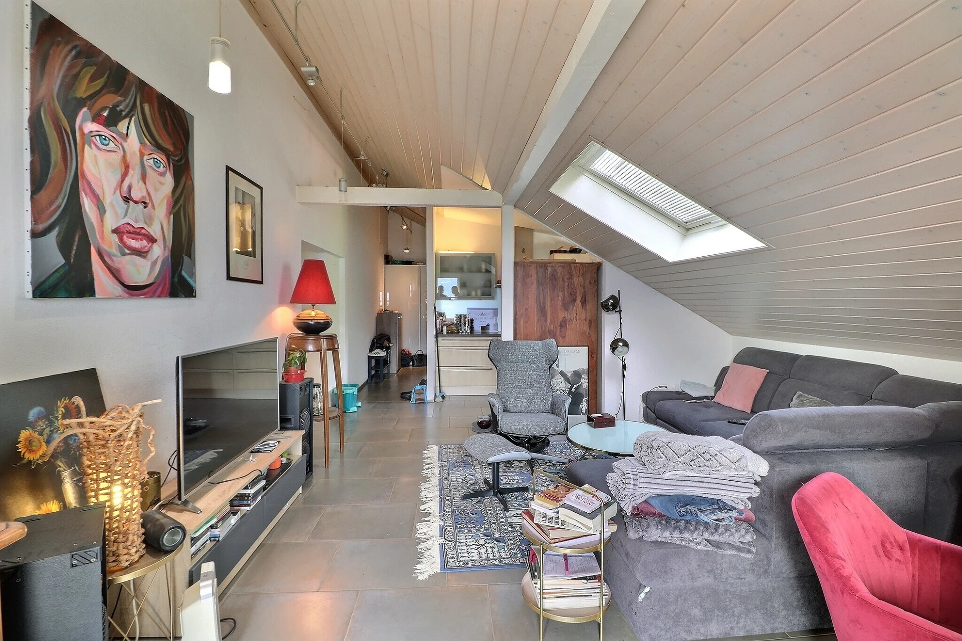 Ce charmant appartement se trouve dans les combles d'un petit immeuble au centre du bourg de Tavel sur Clarens, sur la commune de Montreux.