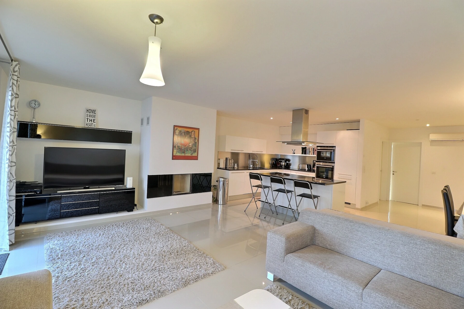 L'appartement est en parfait état car il a été très peu utilisé; les finitions sont de qualité dans un style contemporain plaisant; il est équipé d'un système d'air conditionné ainsi qu'un chauffage distribué par le sol avec des thermostats dans chaque pièces, qui permet de chauffer et aussi de rafraichir les pièces selon le souhait.
