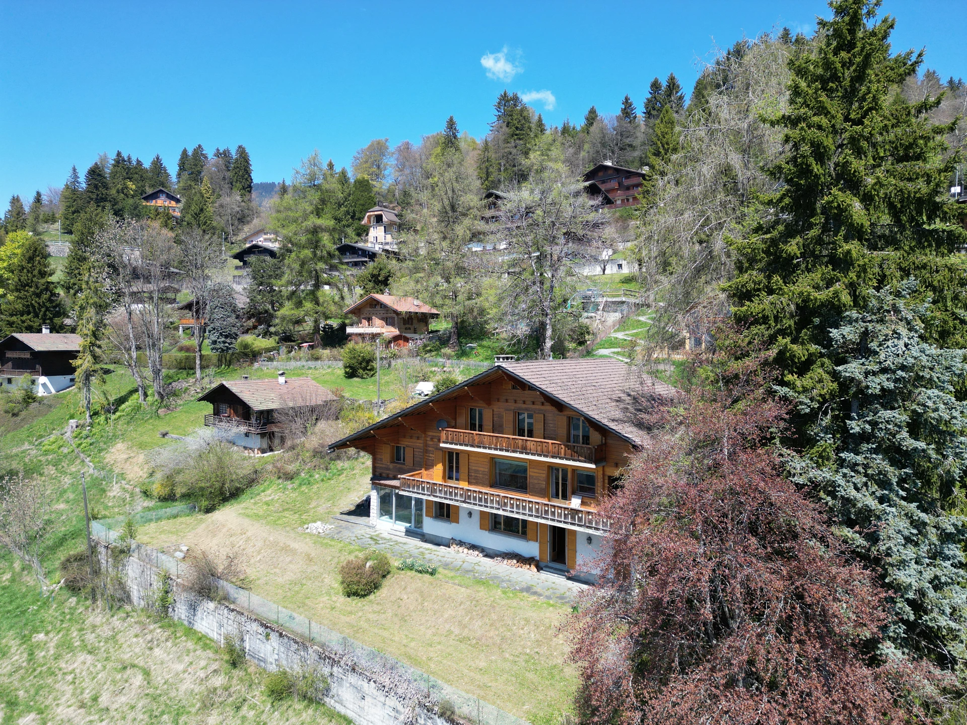 Ce bien se trouve au bout d'un chemin sans issue dans un quartier très calme de Villars-sur-Ollon, dans le quartier d'Arveyres.