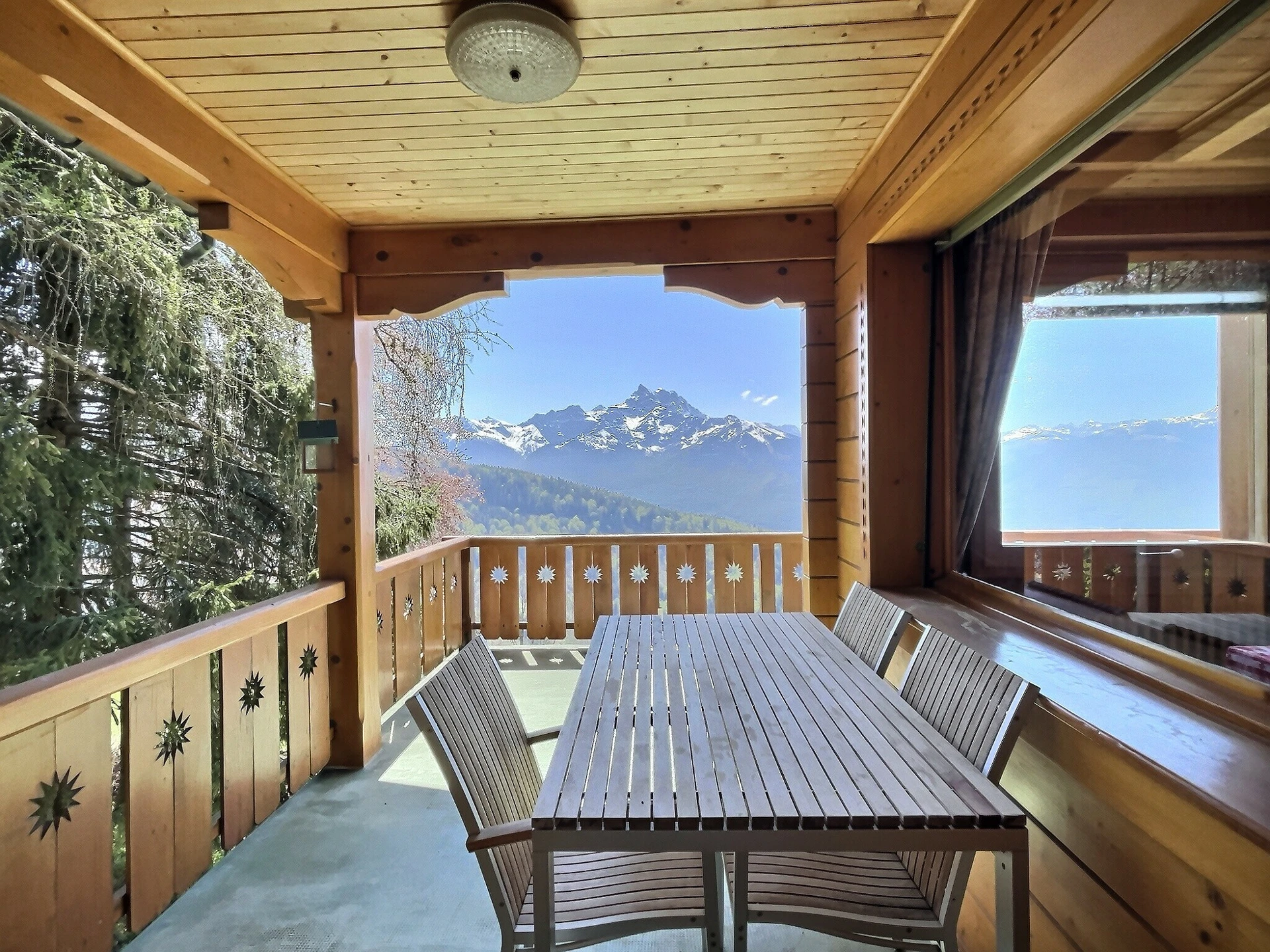 Sa position dominante à flanc de coteau lui permet de bénéficier d'une vue panoramique grandiose et imprenable sur les Alpes et la vallée.