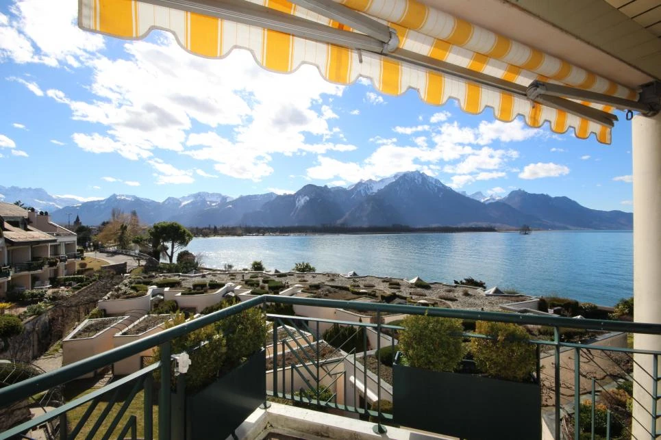 Situation idéale au bord du lac Léman pour cet appartement de 4,5 pièces qui jouit d'une belle vue panoramique sur le lac et les montagnes.